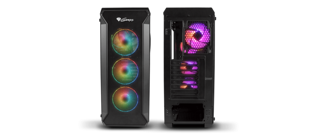 Herní počítačová skříň velikosti Midi Tower Genesis Irid 505 ARGB je dodávána se čtyřmi výkonnými 120mm ventilátory s tichým chodem a efektním podsvícením ARGB. Robustní konstrukce a použité materiály bezpečně chrání instalované komponenty počítače. Vnitřní prostor skříně a jeho uspořádání umožňuje naistalovat ty nejvýkonnější komponenty včetně vodního chlazení typu All in One, grafické karty o délce až 380 mm nebo chlazení procesoru s výškou 165 mm. Uvnitř skříně je navíc prostor pro sedm SSD disků 2,5″a další dvě pozice pro disky velikosti 3,5″. Skříň podporuje základní desky formátů Mini-ITX, Micro-ATX a ATX.