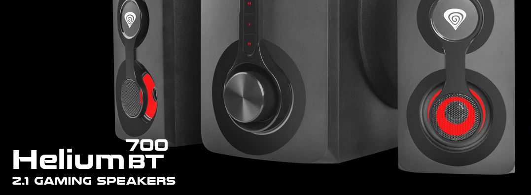 Poutavý soundtrack v pozadí a uchvacující zvukové efekty jsou nedílnou a důležitou součástí každé počítačové hry. Zvuk blížícího se nepřítele uprostřed silných explozí musí být slyšet za každých podmínek. Reproduktorová sestava 2.1 Genesis Helium 700BT s celkovým výkonem 60W RMS poskytuje perfektní basy a prostorový zvuk, který vám přinese převahu ve virtuálním světě her a umožní ještě intenzivnější procítění děje. Reproduktory Genesis Helium 700BT toho ale umí mnohem víc. Jsou vybaveny množstvím dalších funkcí, jako jsou: drátové a bezdrátové připojení BT 4.2, dálkové ovládání, čtečka SDkaret a připojení USB, LCD displej, dřevěné tělo reproduktorů a regulace basů i výšek.